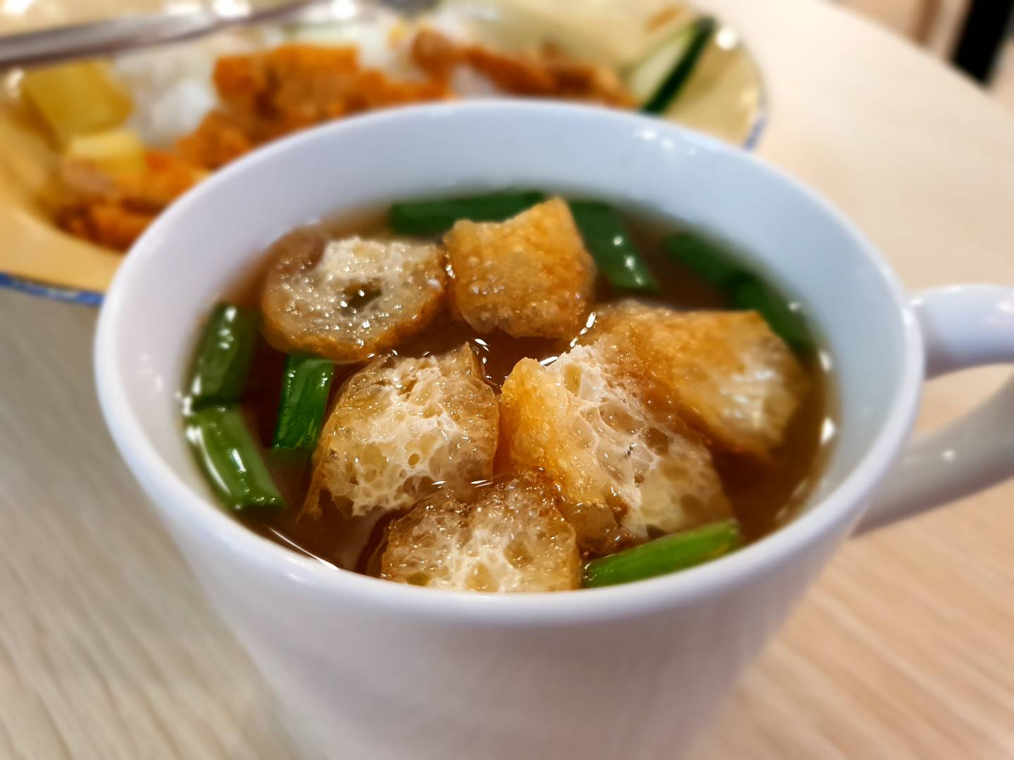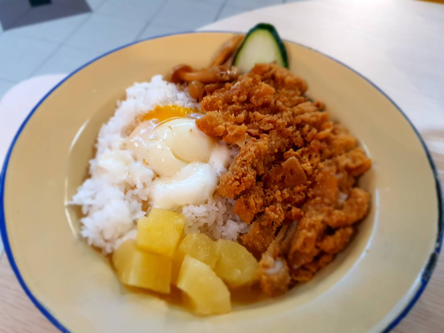 If laksa is not your thing, you can consider their Chicken Katsu rice (this is the special of the day almost all the time). It consists of battered chicken thigh served with pineapples, mushrooms, cucumbers, onsen egg and miso soup in a cup. I like that the fried chicken is not greasy and has a decent meat to batter ratio despite the cutlet being on the thinner side. Serving fried food with pineapples is also brilliant because it imparts a sweet and tart flavour to the meat, making it more appetizing. Consequently, the meal is also less jelat.