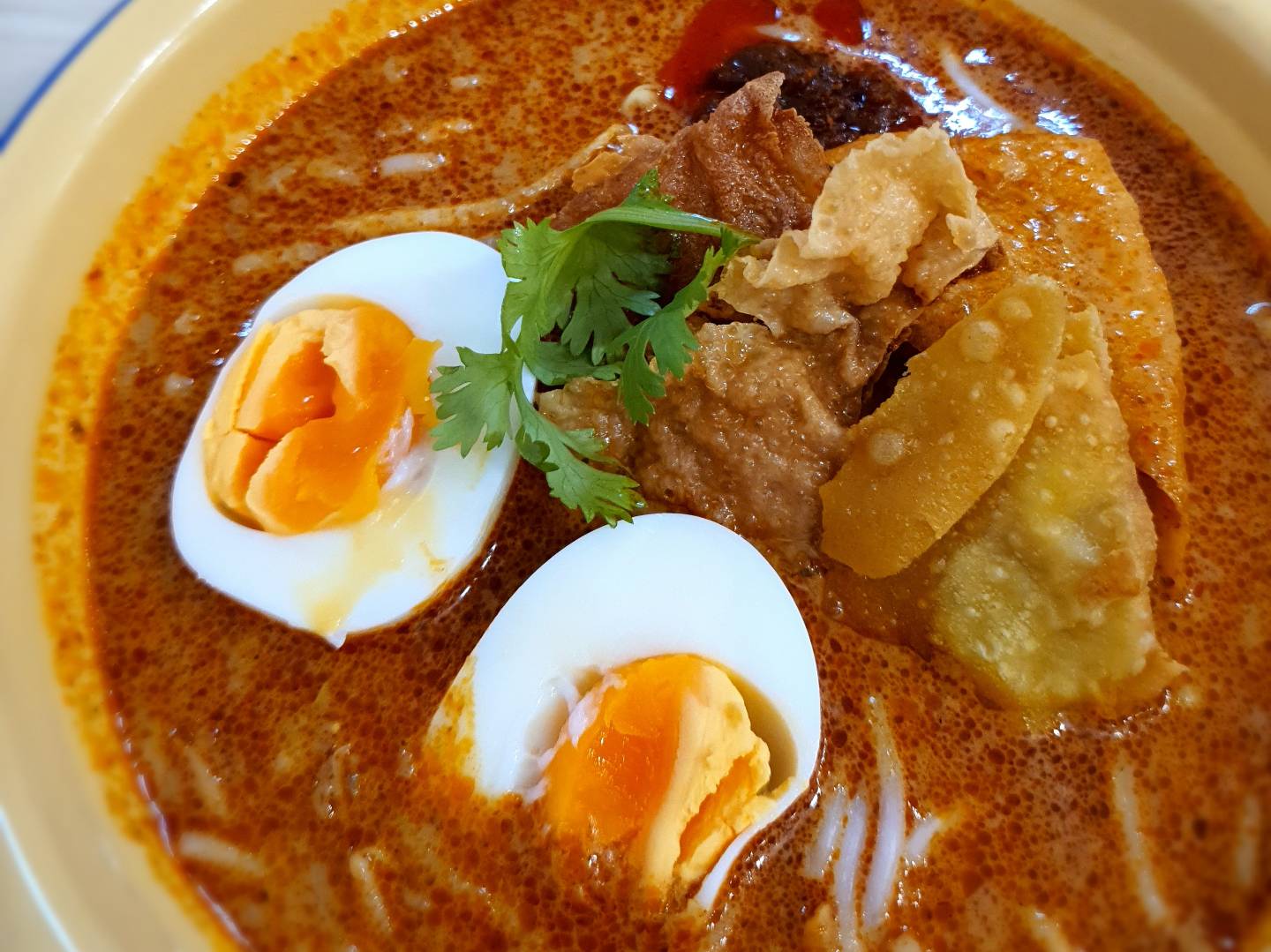 The laksa gravy is also suitably rich and flavourful but not overly so. The spice level is just low enough to suit the masses yet still satisfying. As a reference, my 3yo son who takes mild spice could eat the laksa noodles though he promptly finished his whole bottle of water to neutralize the spice. The only drawback of this laksa is the lack of cockles and that can be a deal breaker for some. Not for me though, because I don't take hum.